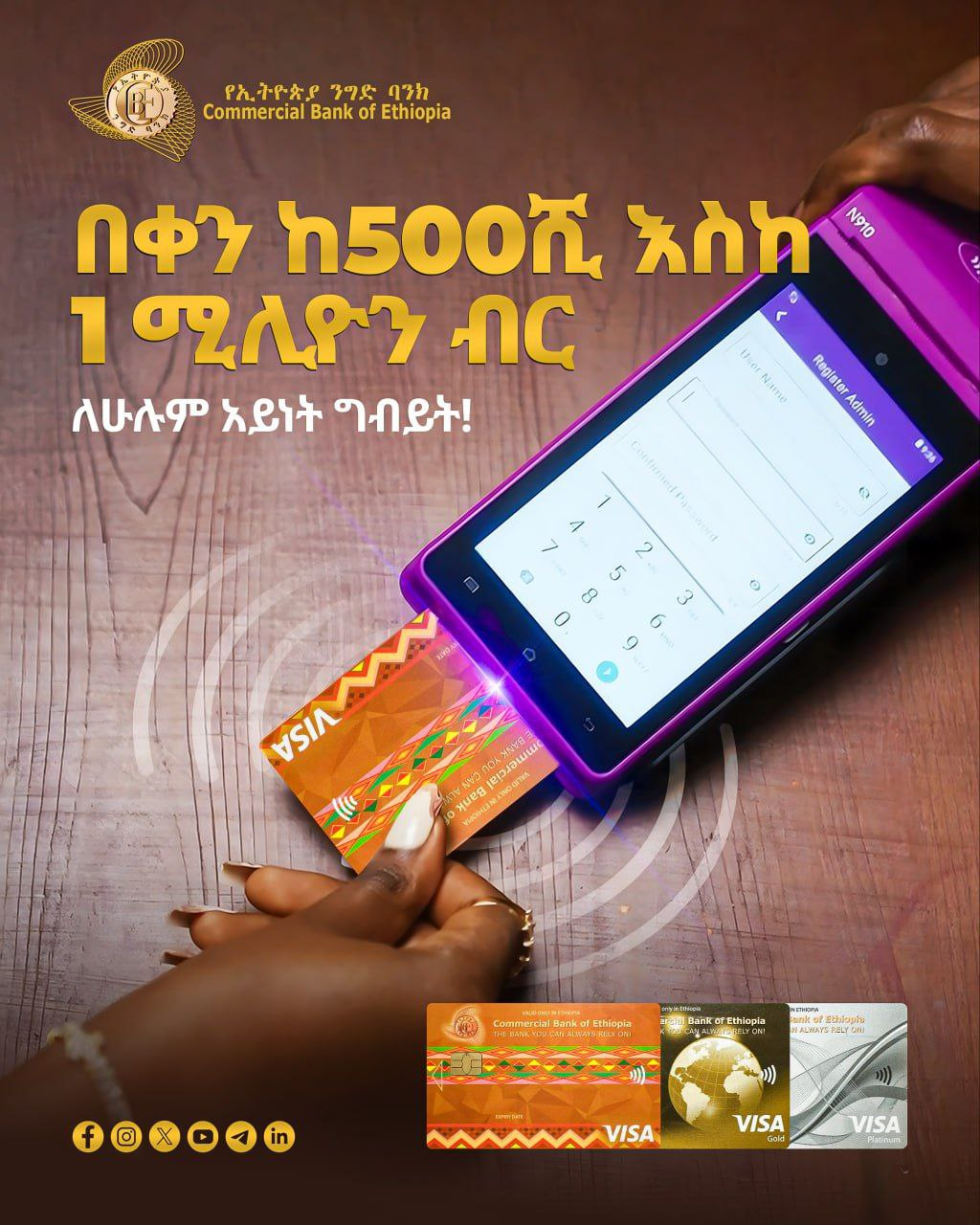በፕላቲኒየም ካርድዎ እስከ 1 ሚሊዮን ብር ግብይት መፈፀም ይችላሉ!